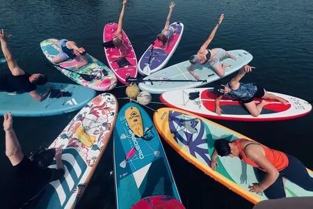 SUP Yogaauf dem idyllischen See Triolago